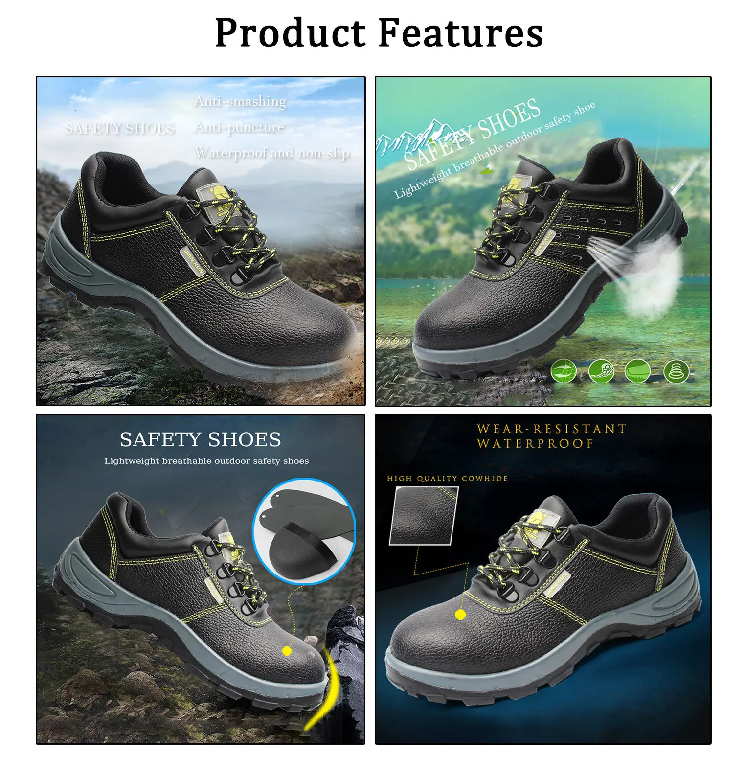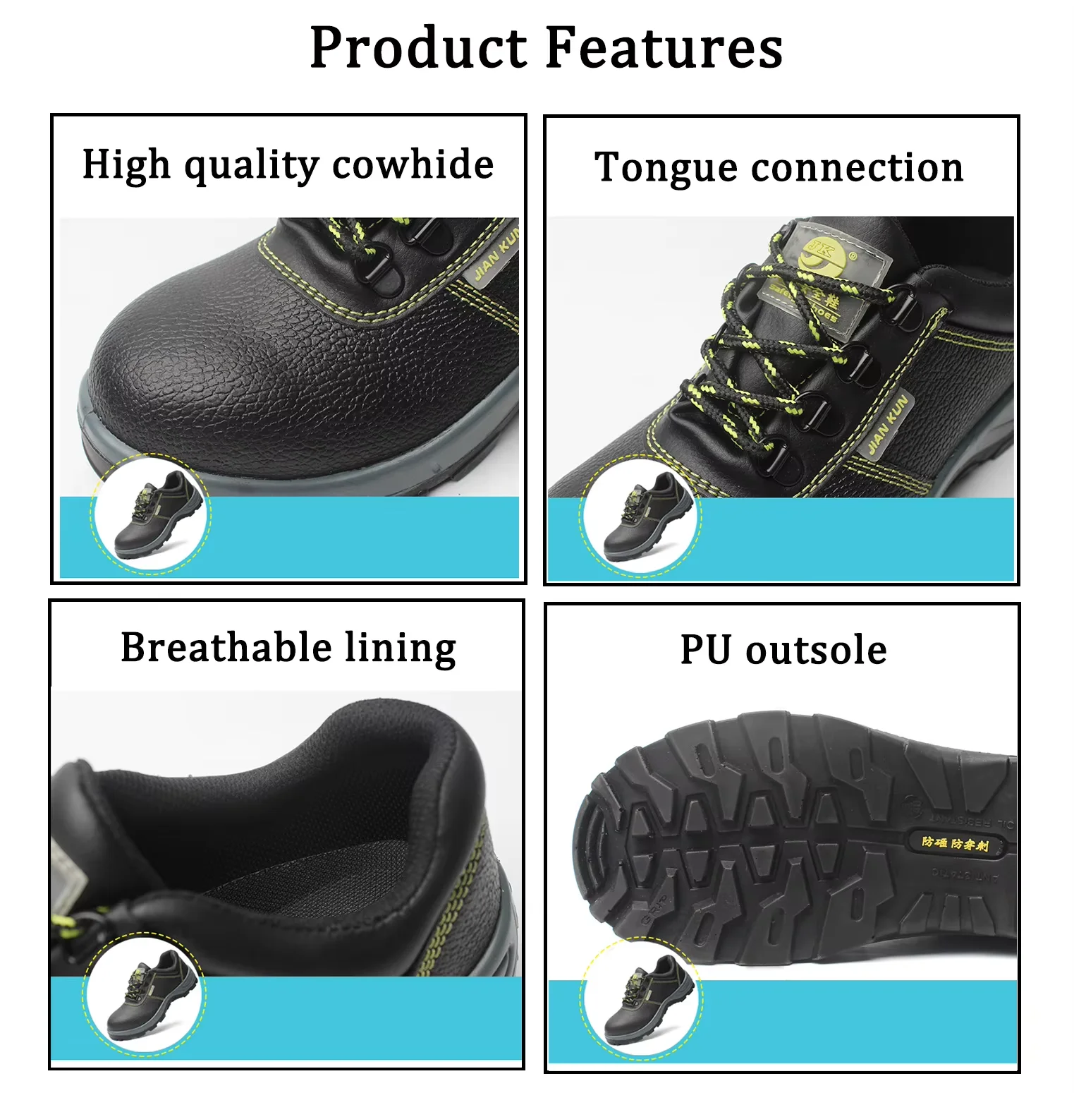 JIANKUN Winter Summer Industrial Work Safety Shoes Men Waterproof Embossed Leather Shoes with Anti-Puncture Anti-Smash Iron Toe